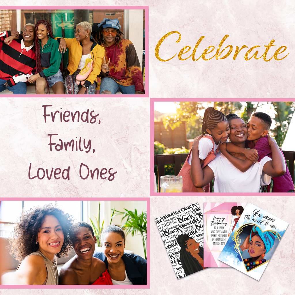 Make every birthday celebration extra special with our African American Birthday Cards Assortment Box! This beautifully designed set of 18 high-quality greeting cards is perfect for celebrating Black women, family members, and friends, featuring stunning illustrations of Black women and sisterhood.