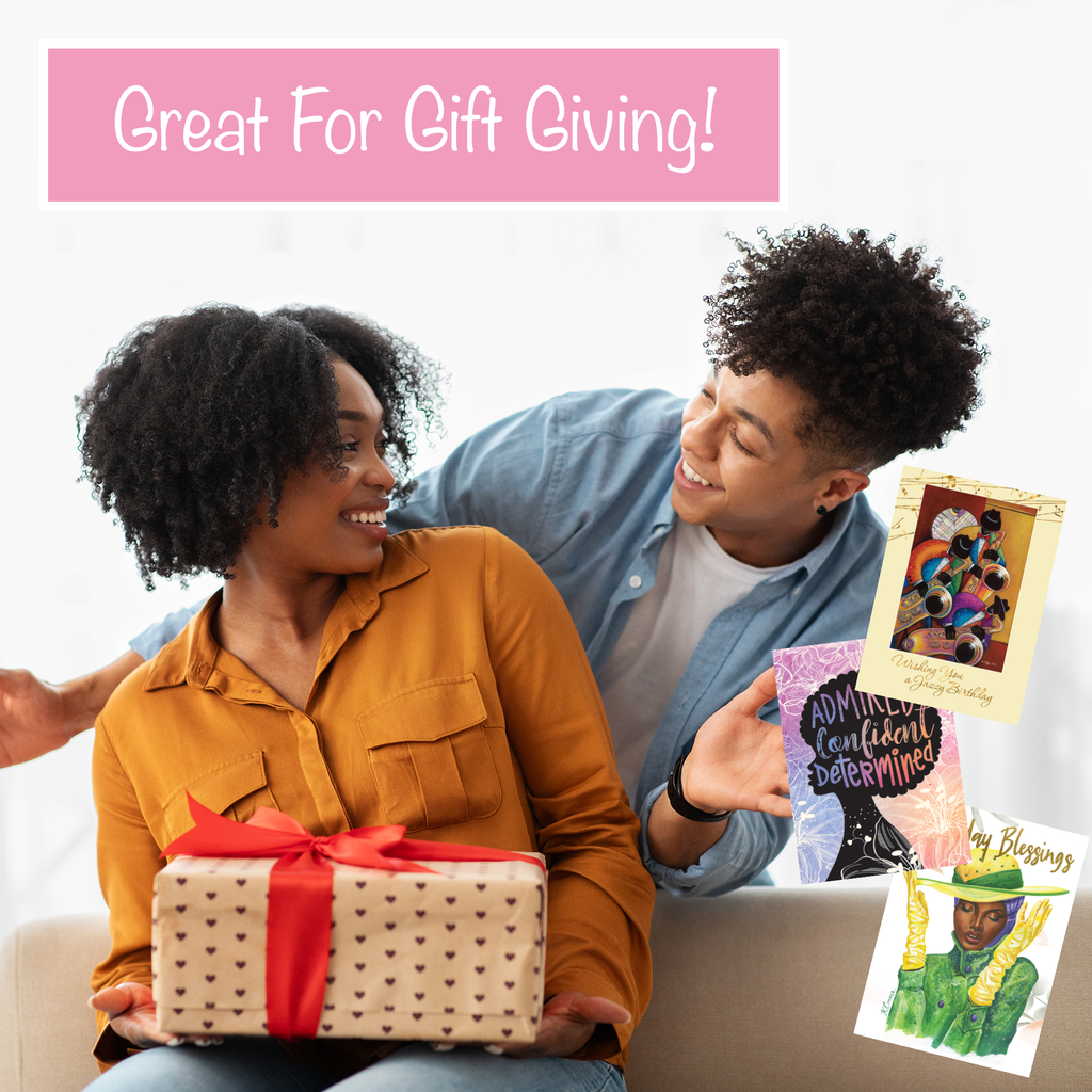 • Stunning Black Women Artwork – Each card showcases vibrant, inspiring illustrations of Black women, making this collection perfect for African American women and those who appreciate culturally rich designs.