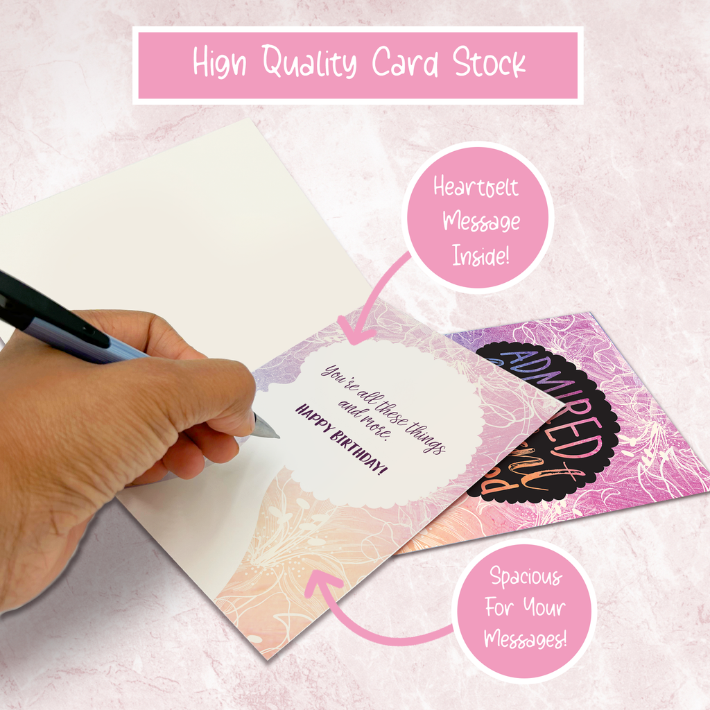 Each card is printed on premium thick cardstock, ensuring a luxurious feel and durability compared to standard birthday cards. The set includes 18 white envelopes, making it easy to send your heartfelt wishes in style. Inside, each card contains a meaningful, pre-written birthday message, while the blank space on the opposite side provides room for personalized notes.