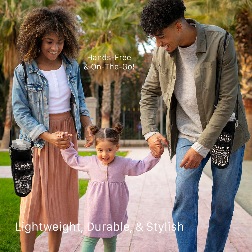 With two secure zippered pockets for your phone, keys, or wallet, and an adjustable strap for hands-free wear, this bag is ideal for those who want style and function in one thoughtful accessory. Whether you're gifting or treating yourself, this is more than just a water bottle holder—it's an expression of culture.