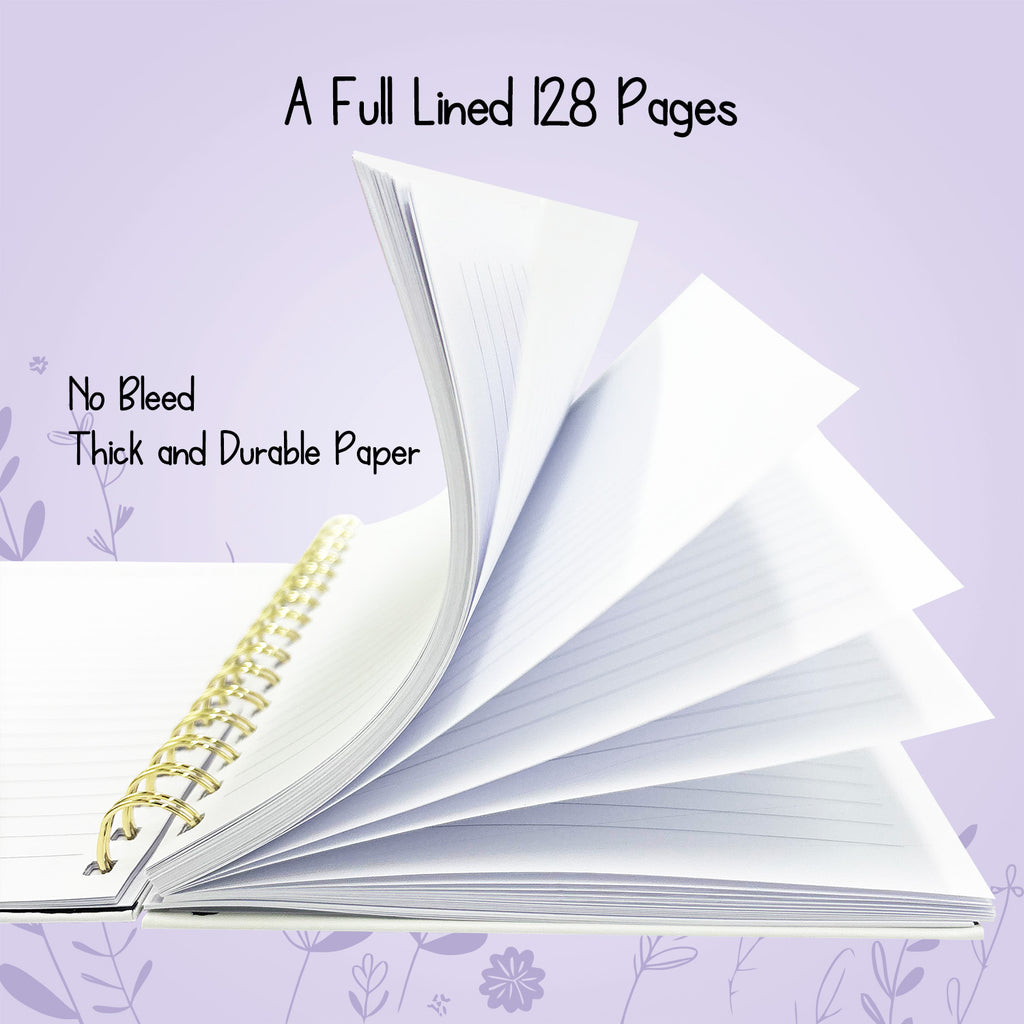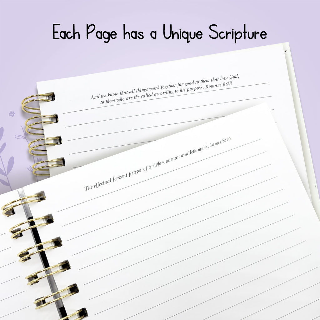 Quality: The pages are high quality, thick paper preventing any ink bleeding through or smudging. Journal is spiral bound, including 128 pages with scripture at the top of every page. Size: 6.25” x 8.5”