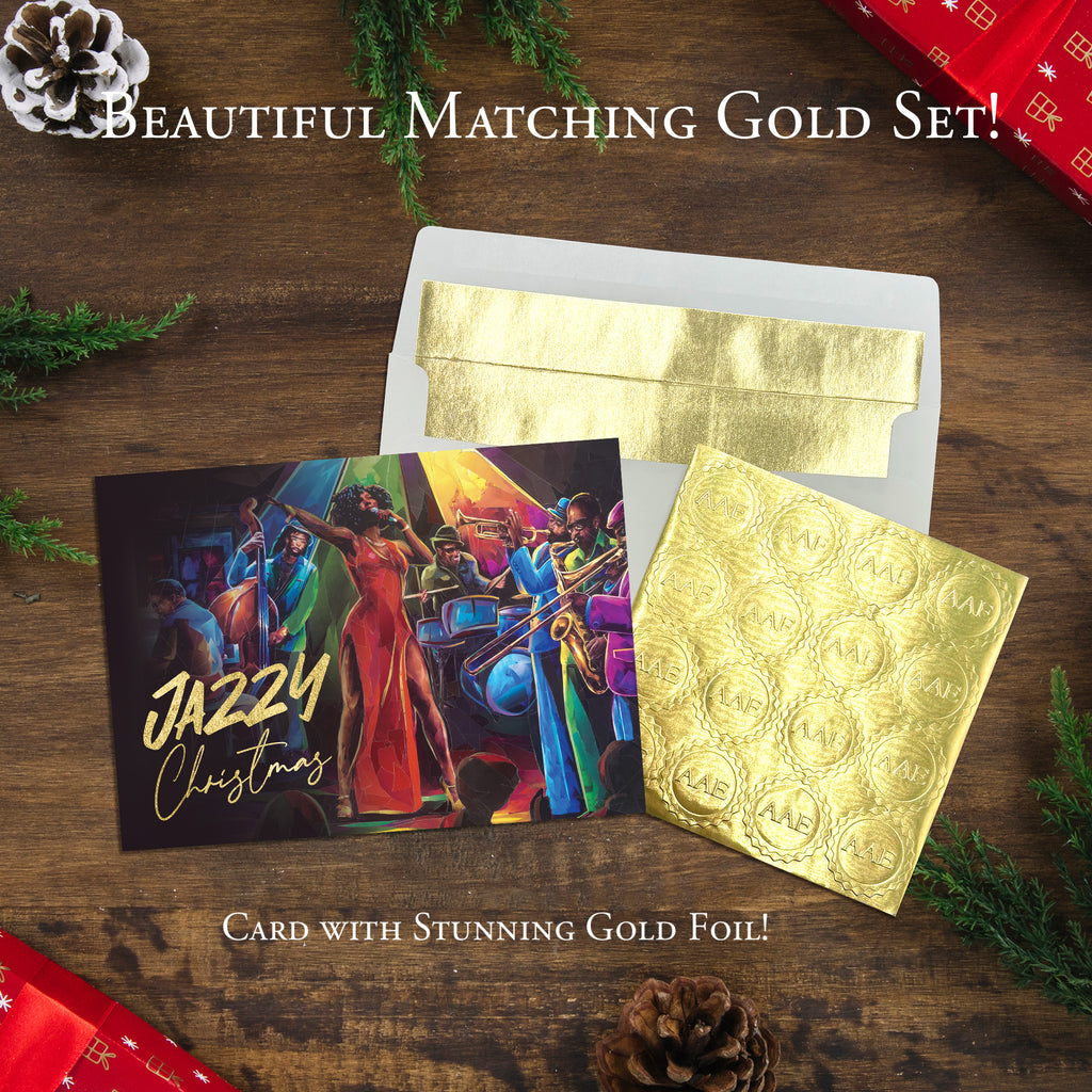 Foil-Stamped Christmas Greeting Cards Box SetAfrican American Expressions Christmas cards celebrate the joy of the holidays and the vibrancy of African-American culture! Our collection of thoughtful seasonal greeting card designs feature faith-inspiring inscriptions and culturally reflective artwork gorgeously embellished with foil-stamping. With over 20 thoughtful designs to choose from, whether timeless, traditional, or modern, you're sure to find the perfect card for everyone on your list!Designed with quality craftsmanship. Every 5 x7" greeting card features a high-resolution image, printed onto sturdy card stock, and brilliantly embossed. You'll enjoy sharing these elegant and uplifting cards with your loved ones!Holidays, SimplifiedEverything you need to be holiday-ready in one box! AAE's boxed sets include 15 gorgeous greeting cards with coordinating foil-lined envelopes and gold sticker seals. Just personalize, seal, and deliver!FeaturesInspirational Christmas Cards5 x 7"Boxed Set15 Embossed Greeting CardsCoordinating Foil-Lined EnvelopesGold Sticker SealsAbout UsAfrican American Expressions is the world’s largest black-owned gift and greeting-card company. Known for eye-catching designs and poignant art pieces, we offer the top selection of culturally authentic gifts and give back to the community through the AAE fundraising program.