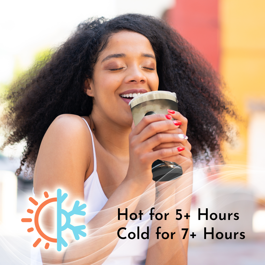 • Double-Wall Vacuum Insulated Made of premium stainless steel to keep drinks cold for up to 24 hours or hot for up to 12. Great for all-day use in any season.